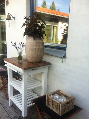 Säsongens stora nyhet var vårt utekök. Det var år av tjat från mig (som ville ha ett) och sen var det två dagars byggande för mannen här hemma. Det behöver inte vara så krångligt. Vi byggde in en dynlåda under köket, väldigt praktiskt.